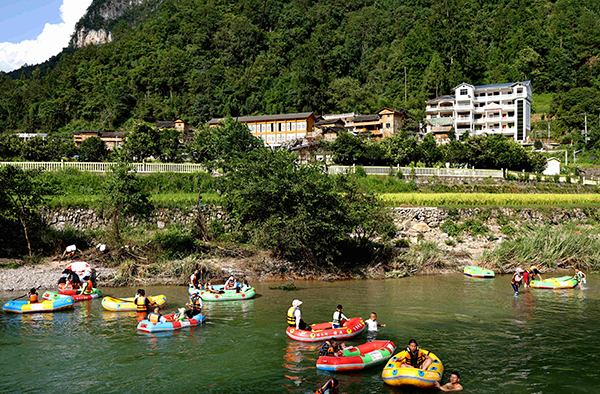 綠樹成蔭、其樂無窮、有驚無險的杉木河“礦泉水上漂”到終點聶家堰上岸,就可以走進岸邊綠樹掩映的民宿在清涼中休憩養身,或漫步參看民居民風養心,然後就着西下的夕陽品一桌充滿山野味道的“農家飯”。