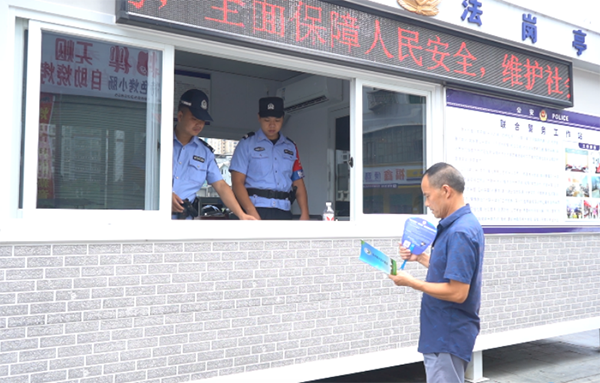 走進岑鞏縣公安局新興派出所、鎮遠縣公安局羊坪派出所聯合警務工作站,筆者看到,站內有辦公室、備勤室等功能區,配備有防暴頭盔、盾牌、救生衣等防暴器材,執勤民警正向過往的群眾發放印有“岑義警務”使用介紹的宣傳扇及防騙反詐宣傳手冊等。