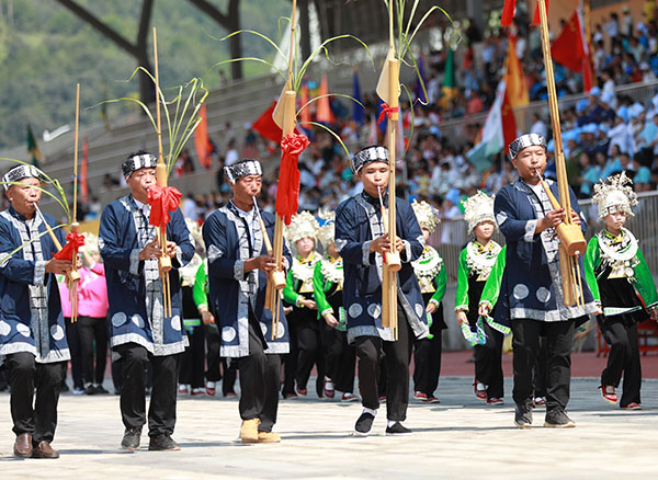 活動比賽現場人山人海,觀眾歡呼雀躍,紛紛拿出手機拍照。比賽間隙,各參賽的行政村啦啦隊紛紛展示馬尾繡繡品、美食特産和才藝表演等。游客現場可享用免費的美食和觀看民族文化展演。