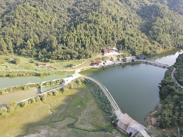 岑鞏縣羊橋土家族鄉祝壩村的“劉洪應山莊”依山傍水。(嚴惠 攝)