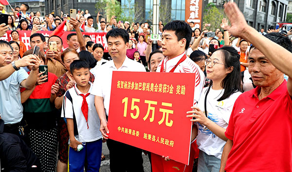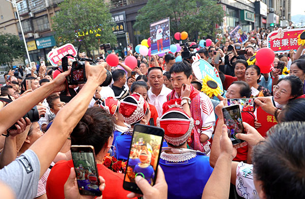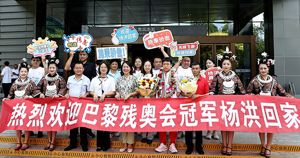 9月11日,在巴黎殘奧會勇奪三金的貴州施秉縣游泳運動員楊洪凱旋,受到鄉親們歡迎。