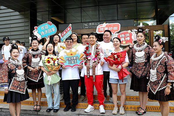 9月11日,在巴黎殘奧會上勇奪男子SM6級200米個人混合泳、SB6級100米蛙泳、S6級100米仰泳三項冠軍的貴州黔東南苗族侗族自治州施秉縣的運動員楊洪凱旋。