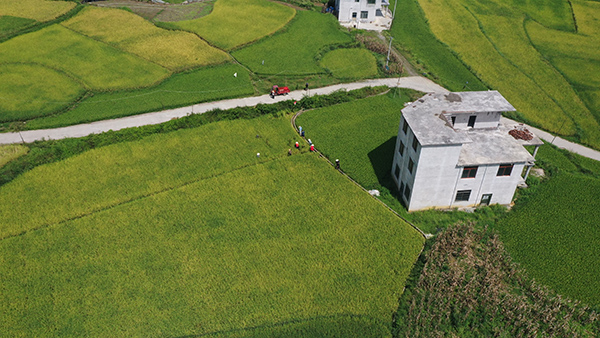 稻田裏,抓魚“能手”們小心翼翼地掀開稻穀,一頓操作徒手秒捉魚,樂呵呵向同伴炫耀,然後一個不小心,到手的魚兒滑溜出去,又鑽進了稻田裏,現場一片歡聲笑語。一陣熱鬧的“搶魚大戰”後,大傢伙拎着抓到的魚兒歡喜歸家,共享全魚盛宴。