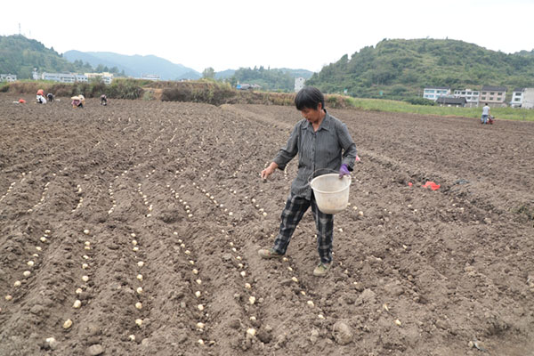 “這兩天是種百合的最好時期,我們從昨天開始栽種百合的,昨天一天栽種了1550斤左右百合。”基地負責人鄧波説,“現在每天都有十多個工人在基地務工,今年我種植百合200畝,爭取在這一個月以內完成種植”。