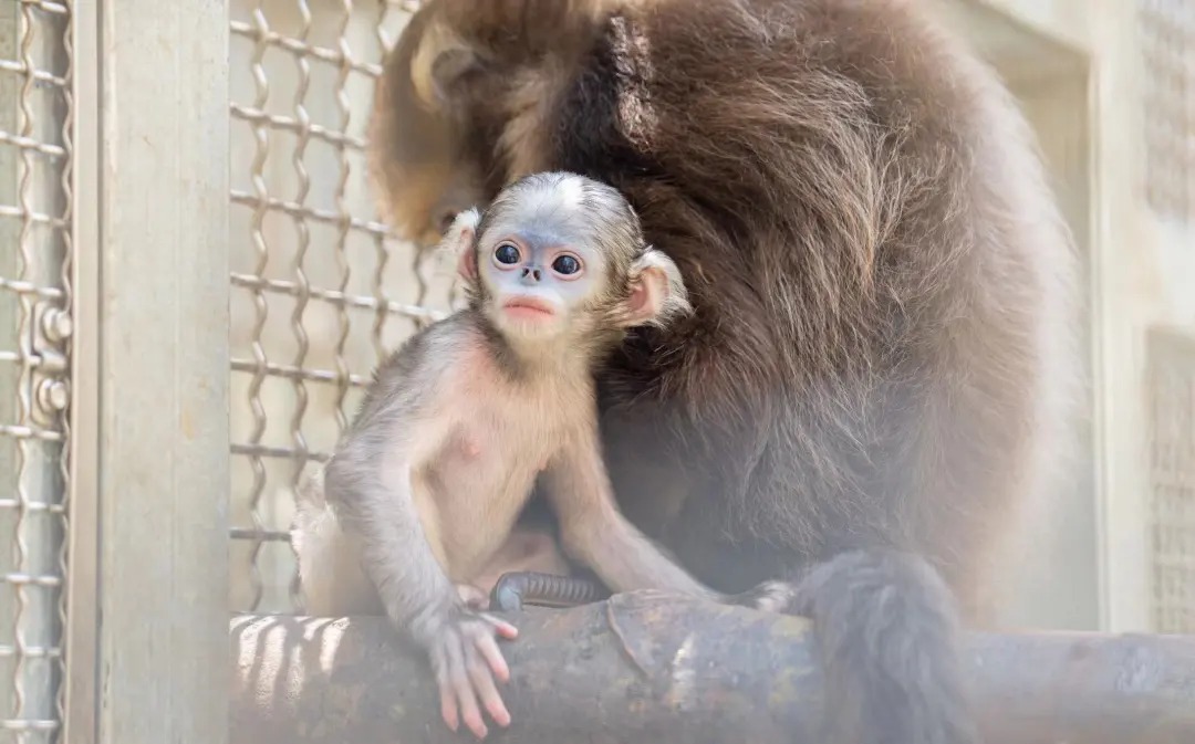 2024年4月2日,在貴州梵凈山國家級自然保護區野生動物救護中心拍攝的黔金絲猴幼崽。(葉順強 攝)