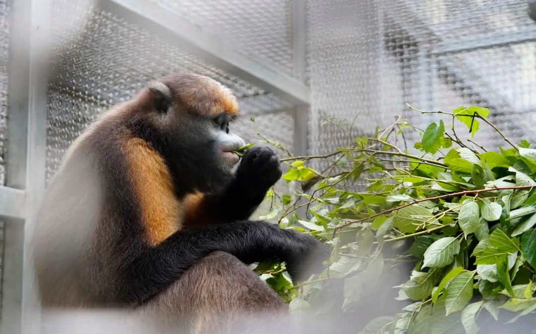 2024年5月29日,在貴州梵凈山國家級自然保護區管理局野生動物救護中心(黔金絲猴研究中心) 拍攝的黔金絲猴“天天”。(高正燕 攝)