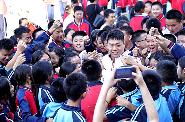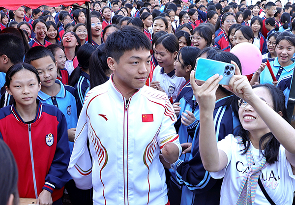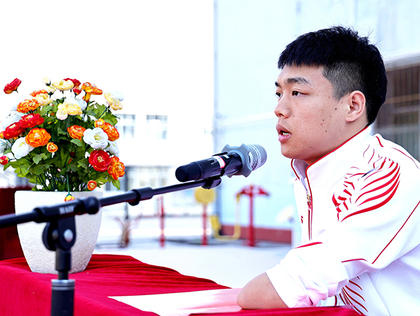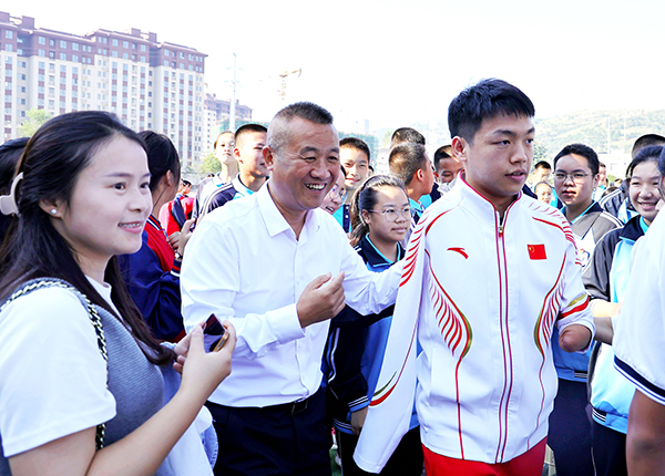 9月25日上午,在巴黎殘奧會游泳賽中勇奪三金、被稱為“三冠王”的貴州施秉運動員楊洪,應施秉縣第二中學邀請,回到母校給學弟學妹們作了一場別開生面言傳身教的勵志報告,贏得師生們熱烈的掌聲。(奉力)