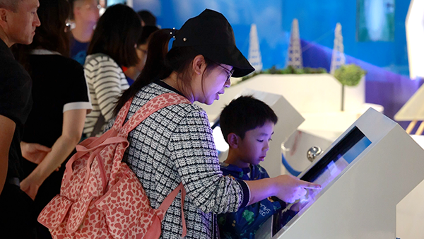 “紅領巾講解員”為游客講述“科技紅故事”。
