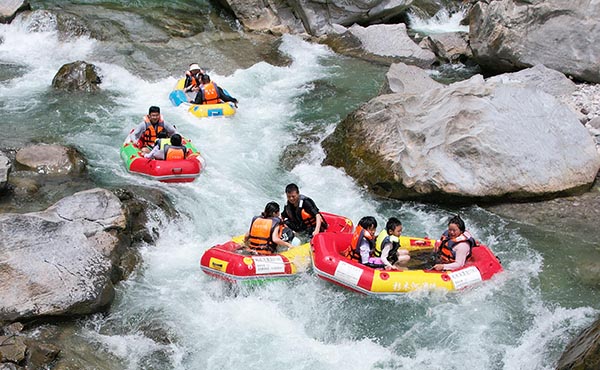 圖為游客在貴州省黔東南苗族侗族自治州施秉縣杉木河景區漂流。磨桂賓 攝