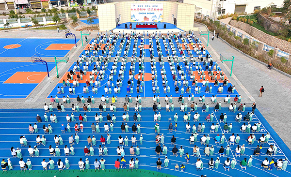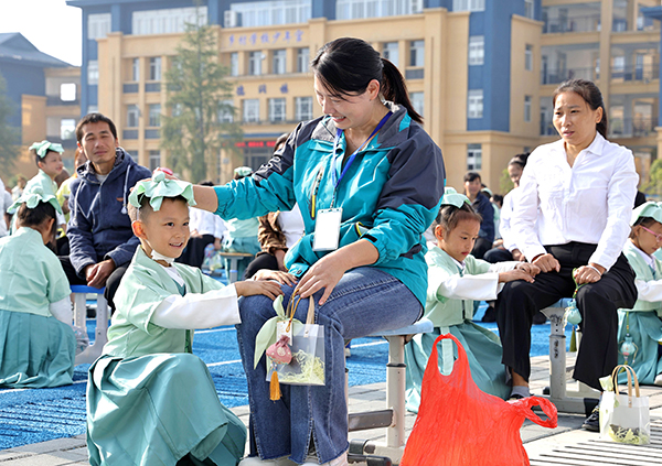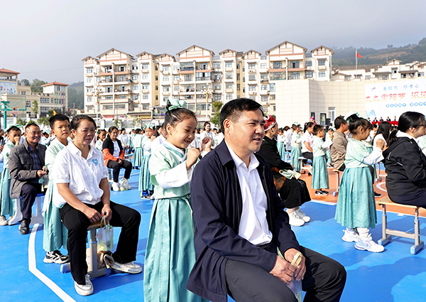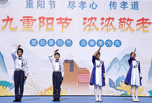 該校一年級300多名學生為家長送上“重陽粑”、小香包,為他們揉肩、捶背、敬茶,集體手語給家長送上節日祝福,集體詩朗誦表達了孩子們對祖國的熱愛之情。(奉力)