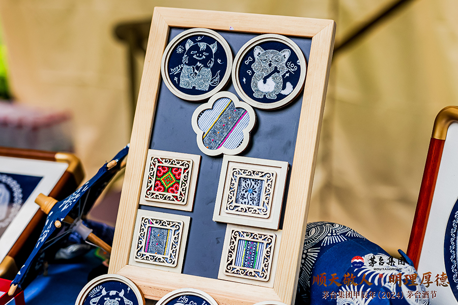 10月11日,用貴州水族馬尾繡繡成的茅&“小茅”形象。