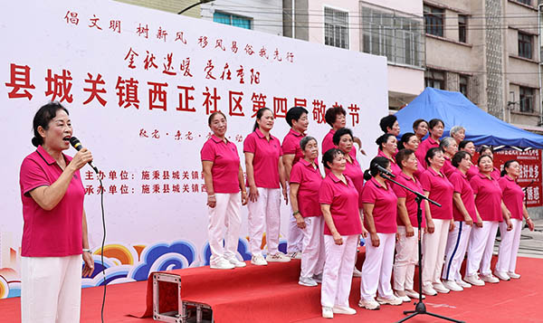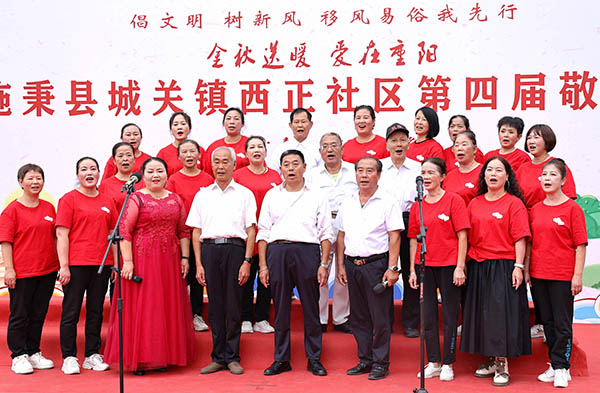 10月10日,施秉縣城關鎮西正社區敬老節上合唱《我的祖國》。