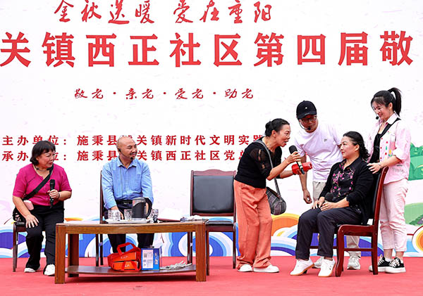 10月10日,施秉縣城關鎮西正社區敬老節上表演小品《彩禮》。