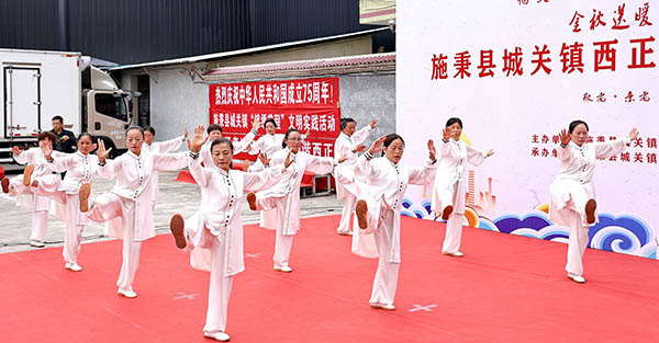 10月10日,施秉縣城關鎮西正社區敬老節上太極拳表演。