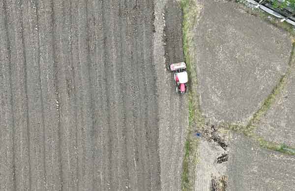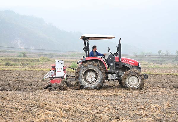 10月16日,村民在松桃苗族自治縣烏羅鎮駕駛旋耕施肥播種機作業。(謝慧芳 攝)