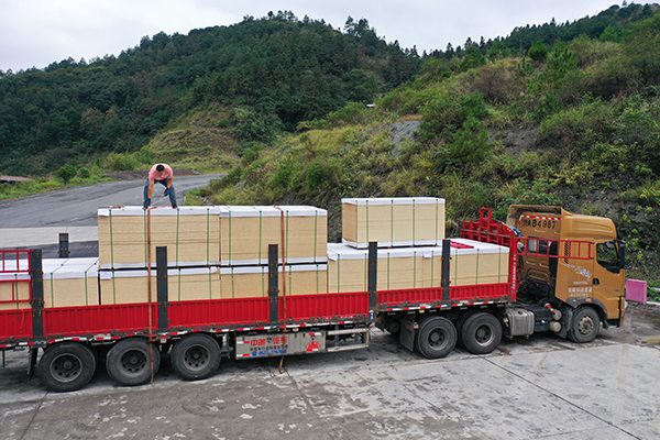 這兩天,貴州省劍河縣天生祥木材智能製造有限公司又忙着發第二批貨物。一輛輛叉車繁忙&&,把打包好的貨物裝載上大卡車,發往貴陽市場。