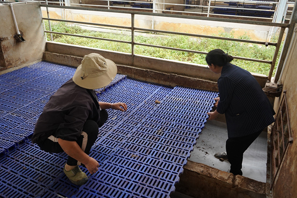工人在安裝羊舍漏糞板。(何小雨 攝)