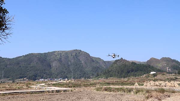 在另一旁的地塊裏,植保無人機在農機手的熟練操控下在壩區上空進行飛播作業,一顆顆油菜種子通過無人機底部的旋轉噴頭撒入田間。相比傳統播種,既省去了育苗和移栽環節,也大大節省了生産成本,提高了播種效率,技術有了保障,農戶也有了底氣。