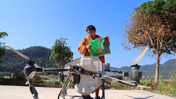 “我們這個植保無人機,它能快速地撒種,節約人工,提高效率,節本增收。因為我們是山區,在我們山區日作業量大概在600畝到700畝左右。”貴州山水農業機械發展服務有限公司農機手石洪濤説。