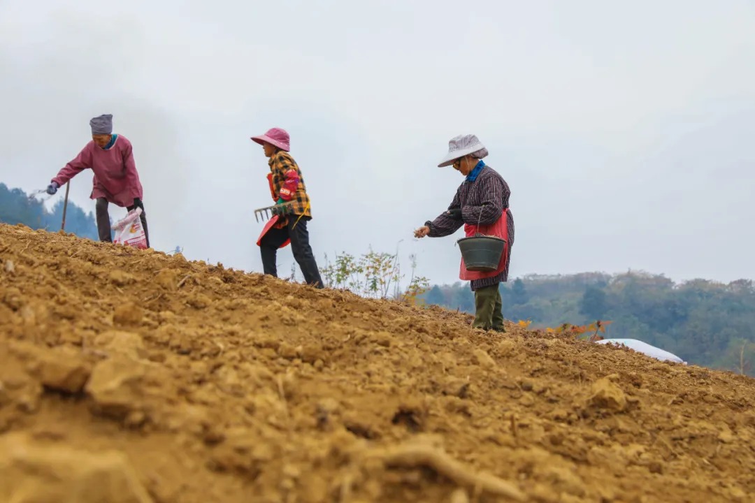 初冬時節,正是太子參播種的關鍵時期。連日來,松桃縣正大鎮地所村、當領村村民們正搶抓有利時機移栽太子參,整地、施肥、下種、覆土等作業,一派熱鬧繁忙的場景。