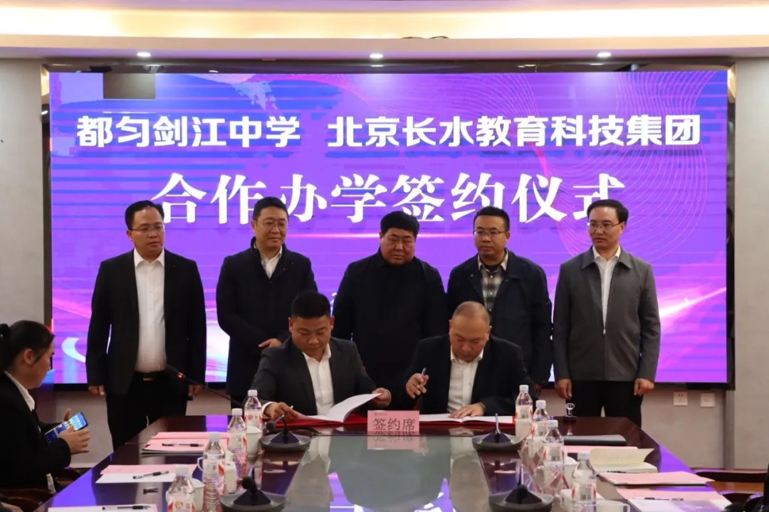 11月18日,北京長水教育科技集團與都勻劍江中學在貴州省黔南布依族苗族自治州都勻市舉行合作辦學簽約儀式。