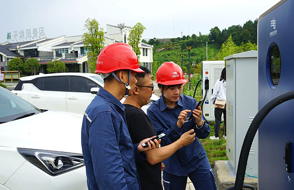 工作人員現場“手把手”服務群眾使用充電樁充電。(陳竟 攝)