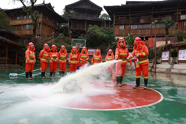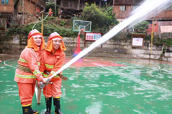 日常中,她們拿起鋤頭種地,放下鋤頭滅火。平日裏,她們還肩負起了巡寨、喊寨,入戶宣傳等責任。這支訓練有素的女子義務消防隊已然成為了守護家鄉安全的堅強力量。