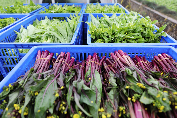 “我們種植的白菜薹、紅菜薹都是以保底價簽訂了訂單銷售協議的,有穩定的市場,完全不擔心銷路。”楊煥昌説,基地種植的菜薹憑藉着高品質、好口感,十分受消費者喜愛。採摘的新鮮菜薹在産地冷庫預冷後,就立即發往廣東、廣西等地市場。
