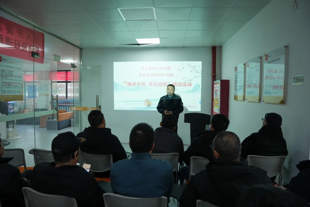 冬季寒風漸起,貨車司機與網約車司機作為交通運輸行業的中堅力量,面臨着更加嚴峻的工作環境與挑戰。為深入踐行以人民為中心的發展理念,積極響應國家對加強新就業形態勞動者權益保障的號召,12月11日,貴州省交通執法八支隊工會開展了“&&車輪 冬送溫暖”暖途活動,此次活動由貴州省交通執法八支隊黨委委員、副支隊長楊清帶隊,機關相關科室及相關大隊負責人參與。