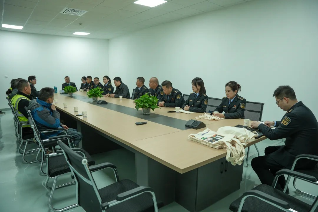在龍裏縣貴州珂立複合材料科技有限公司,八支隊交通執法人員與企業中層管理者、合作承運企業負責人及貨車司機代表進行了深入座談。楊清詳細詢問了企業運營狀況、承運情況,以及承運企業和貨車司機在運輸過程中遇到的難題,並耐心傾聽了他們的心聲與建議。