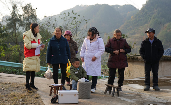 家庭醫生向村民們宣傳健康知識。(鄒磊 攝)