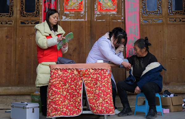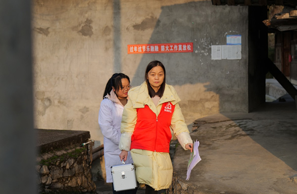 家庭簽約醫生進村入戶開展隨訪。(鄒磊 攝)