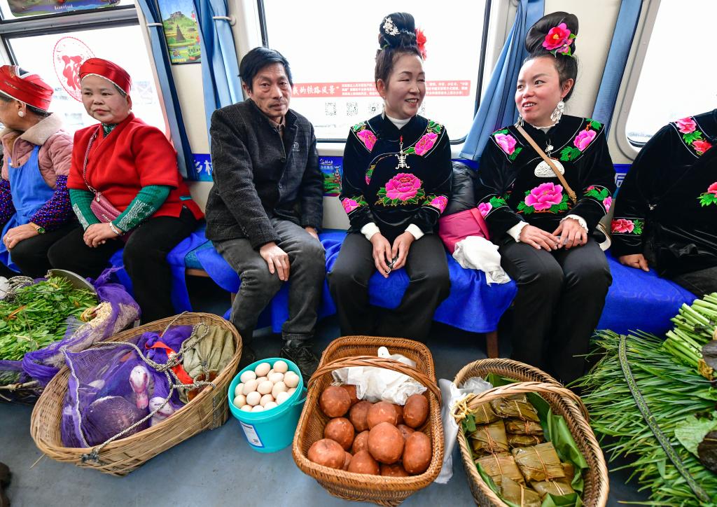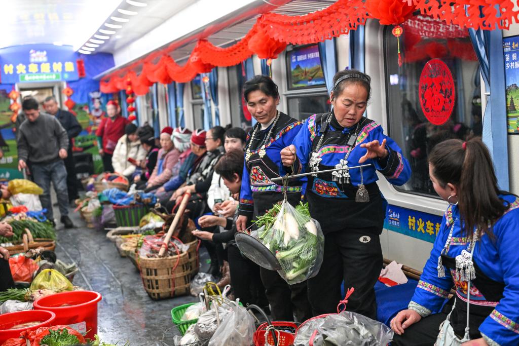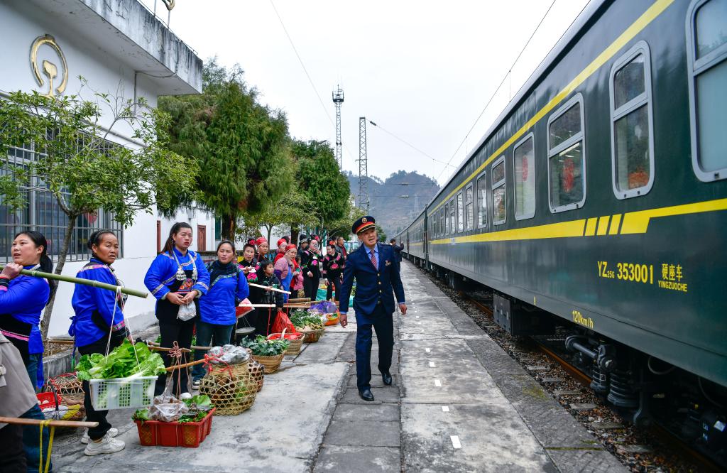 沿線群眾搭乘這趟火車,出門走親訪友,把深山裏的雞鴨牛羊、瓜果蔬菜、土特産品,運到城裏或就在火車上售賣,列車上新鮮的蔬菜味、滿滿的生活味、濃濃的人情味,成為一道獨特而靚麗的“風景線”。