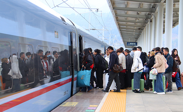 2月7日,來自黔南州都勻、三都、獨山、平塘、荔波、甕安等縣市的500余名群眾集中到三都高鐵站,統一乘坐免費的“返崗專列”從三都縣站出發,奔赴廣東省肇慶、廣州等地復工復産,帶着對美好生活的期盼,又開啟新一年的奮鬥旅途。
