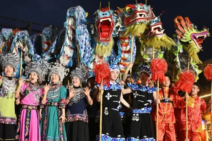 最令人期待的“村光無限”文化表演環節,將現場氣氛推向高潮。觀眾們也跟隨演員們的表演全情投入這場文化盛宴。歡呼聲、喝彩聲此起彼伏。紛紛舉起手機拍照,記錄下這美好且快樂的時刻。