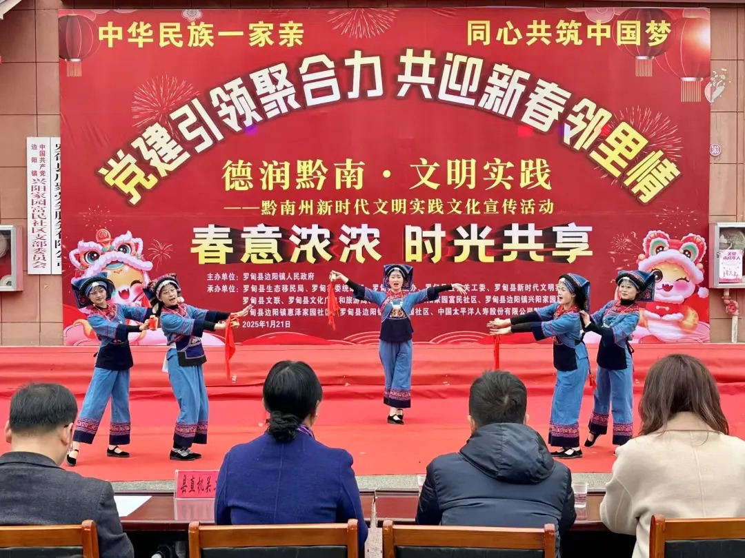 同時,羅甸縣以“文化鑄魂”深挖民族文化資源,搭建交流平台,通過公園、廣場、街區多維聯動,舉辦“三月十三”“六月六”以及民俗巡游慶新春“踩街”等系列特色活動,傳統民俗陽戲、花燈、夜樂舞、布依草龍、舞獅等具有民族特色和地域風情的節目輪番上演,以群眾喜聞樂見的形式,讓文化“活”起來、民心“暖”起來,有形鑄牢中華民族共同體意識。
