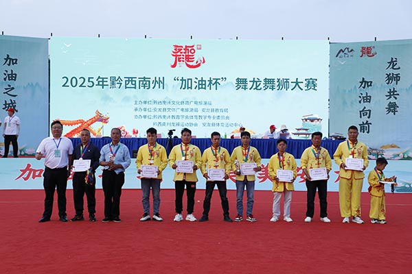 經過兩天的激烈角逐,貴陽學院、貴州醫科大學,黔西南州特殊教育學校、興義市泥凼鎮中學,興義市木隴街道辦事處鐵路小學代表隊分別摘得高校、中學、小學男子、女子舞龍自選套路桂冠;貴陽學院、貴州醫科大學,黔西南州特殊教育學校、望謨縣第一中學,興義市泥凼鎮梨樹中心學校、興義市木隴街道辦事處鐵路小學代表隊分別摘得高校、中學、小學男子、女子競速舞龍桂冠;雲南民族大學、貴陽學院,黔西南州特殊教育學校、關嶺自治縣民族高級中學,興義市木隴街道辦事處鐵路小學代表隊分別摘得高校男子、女子障礙舞龍桂冠。廣西龍天門龍獅團、遵義醫科大學醫學與科技學院、安龍縣龍廣坎疊舞獅隊也分別問鼎南獅、北獅、民族民間舞獅項目魁首。