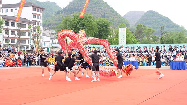 開幕式上,與會嘉賓手持硃砂筆為祥龍瑞獅點睛,寓意為賽事注入祥瑞之氣。特色節目展演環節,武術表演剛柔並濟,苗族板凳舞節奏明快,歌曲《加油之城》旋律激昂,將現場氛圍推向高潮。