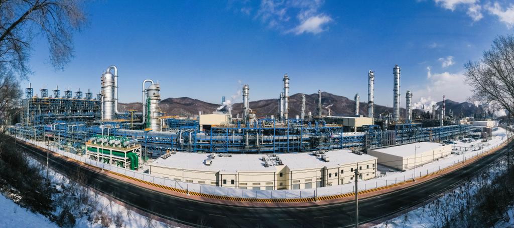 這是2月12日拍攝的位於吉林省吉林市的中國石油吉林石化公司煉油化工轉型升級項目120萬噸/年乙烯裝置建設現場(無人機照片)。新華社記者 許暢 攝