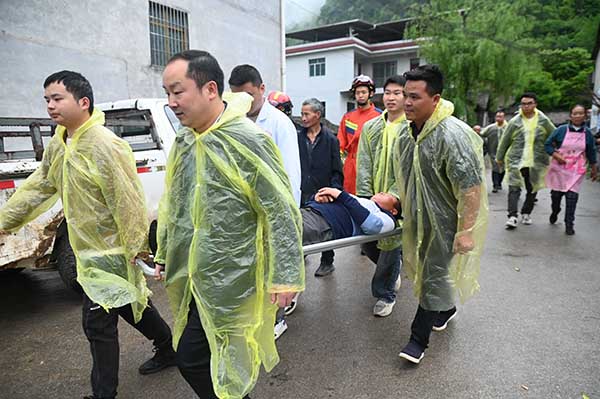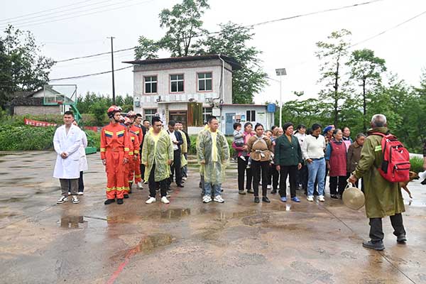 上午九點半,演練正式開始。峰岩村村民余炳文敲鑼示警,村民聽到鑼聲後按照撤離路線陸續撤離,同時,由烏羅鎮消防、衞生院、派出所、政府幹部等組成的應急小組及時響應,幫助村民撤離至峰岩村緊急避險安置點。
