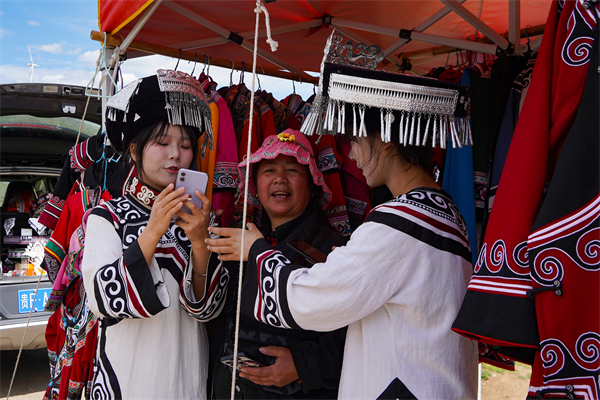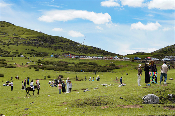 民族文化魅力的展示,從來都是旅游市場的重頭戲。在百草坪風箏與笑語齊飛的同時,當地村民把民族服飾租賃搬到景區,許多“嘗鮮”的年輕人穿起民族服飾穿梭在藍天下、綠草間,通過彼此的鏡頭定格美好瞬間。