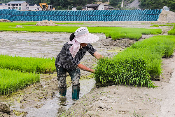 “以前,自己種的幾畝地,一年下來累死累活也掙不了幾個錢,現在政府將我們的小塊土地全部整合成大塊土地,純機械化作業,我們不僅可以收土地的租金,還可以到合作社上班,每天做點起苗、上下車搬運等的相對輕鬆點的活路,一天工資100元,比起自己種地既輕鬆又經濟划算。”正在起苗的馮大姨高興地説。
