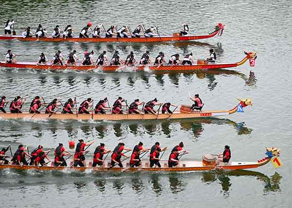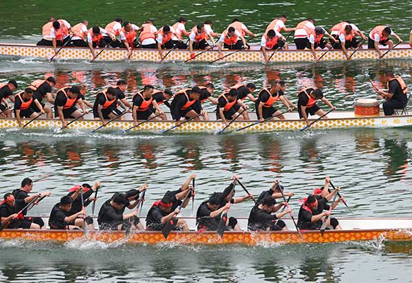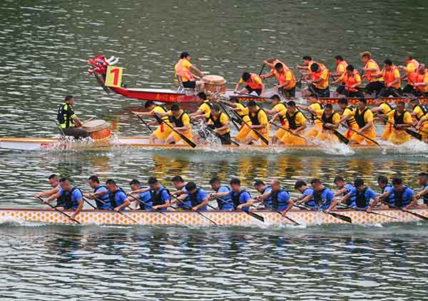 5月31日,農曆五月初五,貴州省銅仁市松桃苗族自治縣舉行一年一度的龍舟比賽。60余支龍舟隊伍劈波斬浪展開角逐,活動現場氣氛熱烈,呈現了一場熱鬧的水上盛宴,吸引許多市民游客前來觀賞。(謝慧芳)