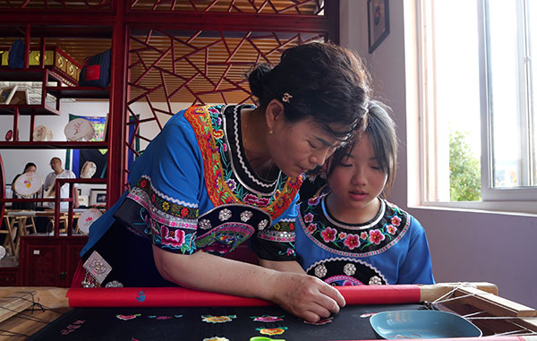 劉心雨把自己學習情況告訴了筆者,她説,“我學習了平針繡、回針繡、交叉繡,繡完作品之後我都非常有成就感,我也希望以後能學到數紗繡、桃花繡、蝴蝶繡,並向老師學習更難的作品,繡的像老師一樣好。”