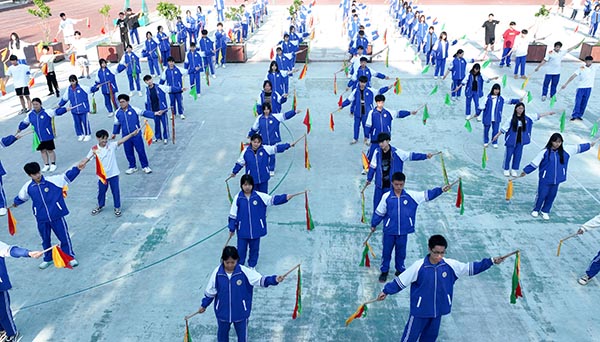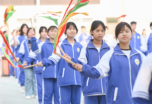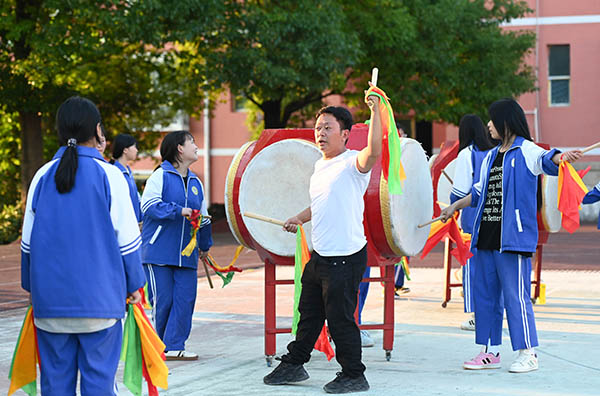 據了解,正大鎮中學在學生入學後每人配備了一對鼓棒,學生們課間時間跳花鼓操,課後打花鼓。該校設置了花鼓、籃球、書法等10個社團,花鼓是該校的特色民族文化社團。學生們打花鼓時,完成一套打花鼓的動作需要手腳協調配合,身體時而翻轉、跳躍,達到了鍛煉的目的。一到課後時間,學生們便相約在操場打花鼓,感受打花鼓的樂趣。目前,該校花鼓社團共有20余名學生。