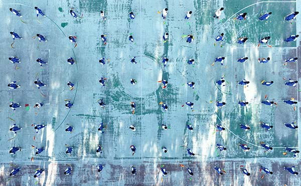 6月12日,松桃苗族自治縣正大鎮中學的學生在跳花鼓操。
