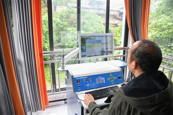 工作人員在貴陽市禾豐水文站進行數字化水文監測。