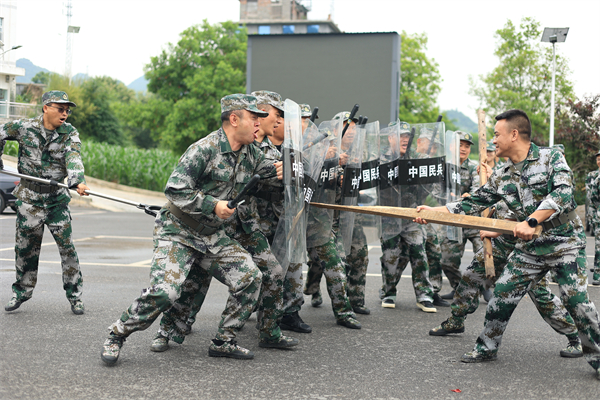 “滅火器使用講究‘提、拔、握、壓’,關鍵時刻能救命!”在消防演練現場,民兵教官正向參訓幹部演示消防技能。此次培訓打破“坐而論道”模式,設置消防救災、盾牌防爆、野外拉練等實戰科目,讓幹部在“硝煙”中強化國防意識。