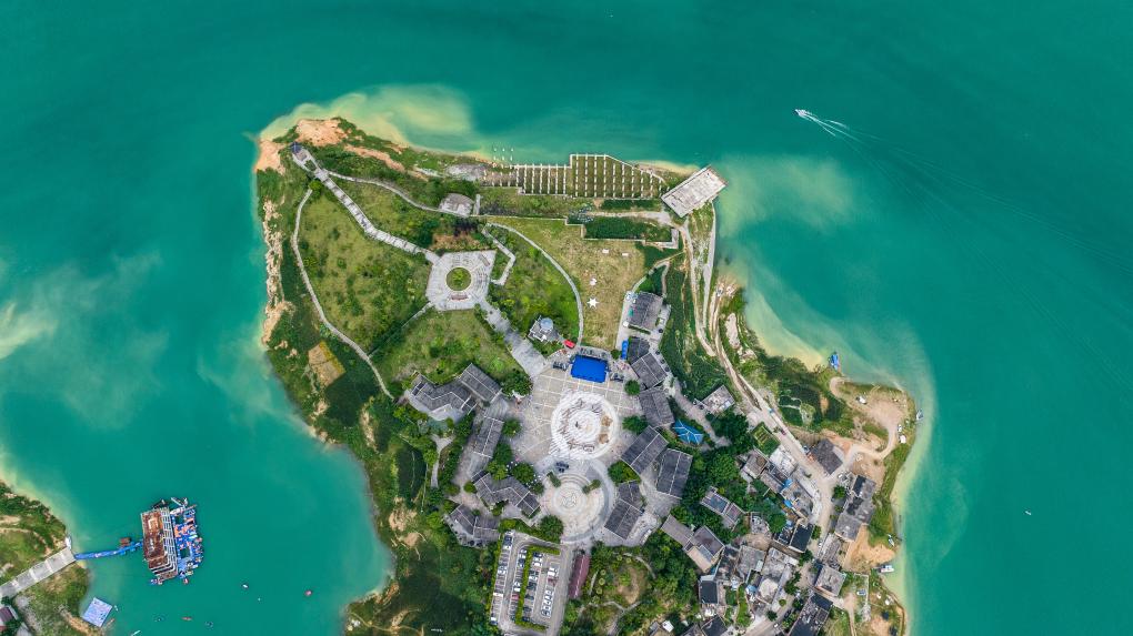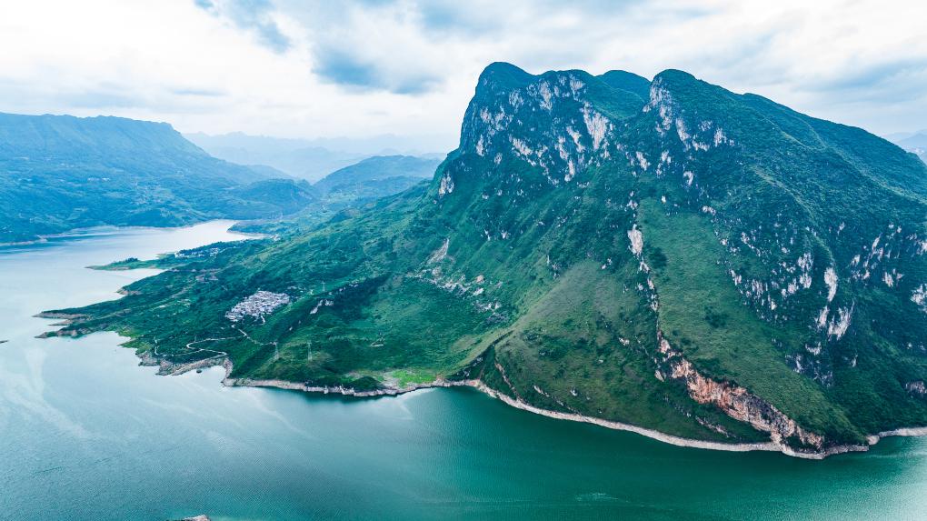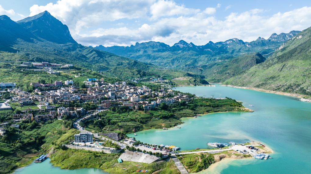 夏日時節,貴州省六盤水市六枝特區牂牁江風景名勝區草木蒼翠、江水碧藍,青山綠水與道路村莊組成一幅幅美麗畫卷。