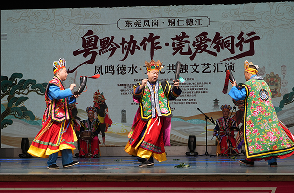 鳳崗鎮的舞麒麟、客家山歌、醒獅等本地文化精彩靈動,讓人叫絕;德江儺戲、德江水龍表演、德江土家哭嫁習俗等樸素粗獷、韻味獨特,兩天的表演掌聲不斷。通過這次文化交流演出,不僅讓鳳崗市民領略了貴州德江獨特的儺文化魅力,也讓德江群眾感受到了東莞開放包容的城市精神。同時,通過文化交流,兩地人民增進了了解、深化了情誼,為後續産業合作、消費幫扶打下了更堅實的基礎。